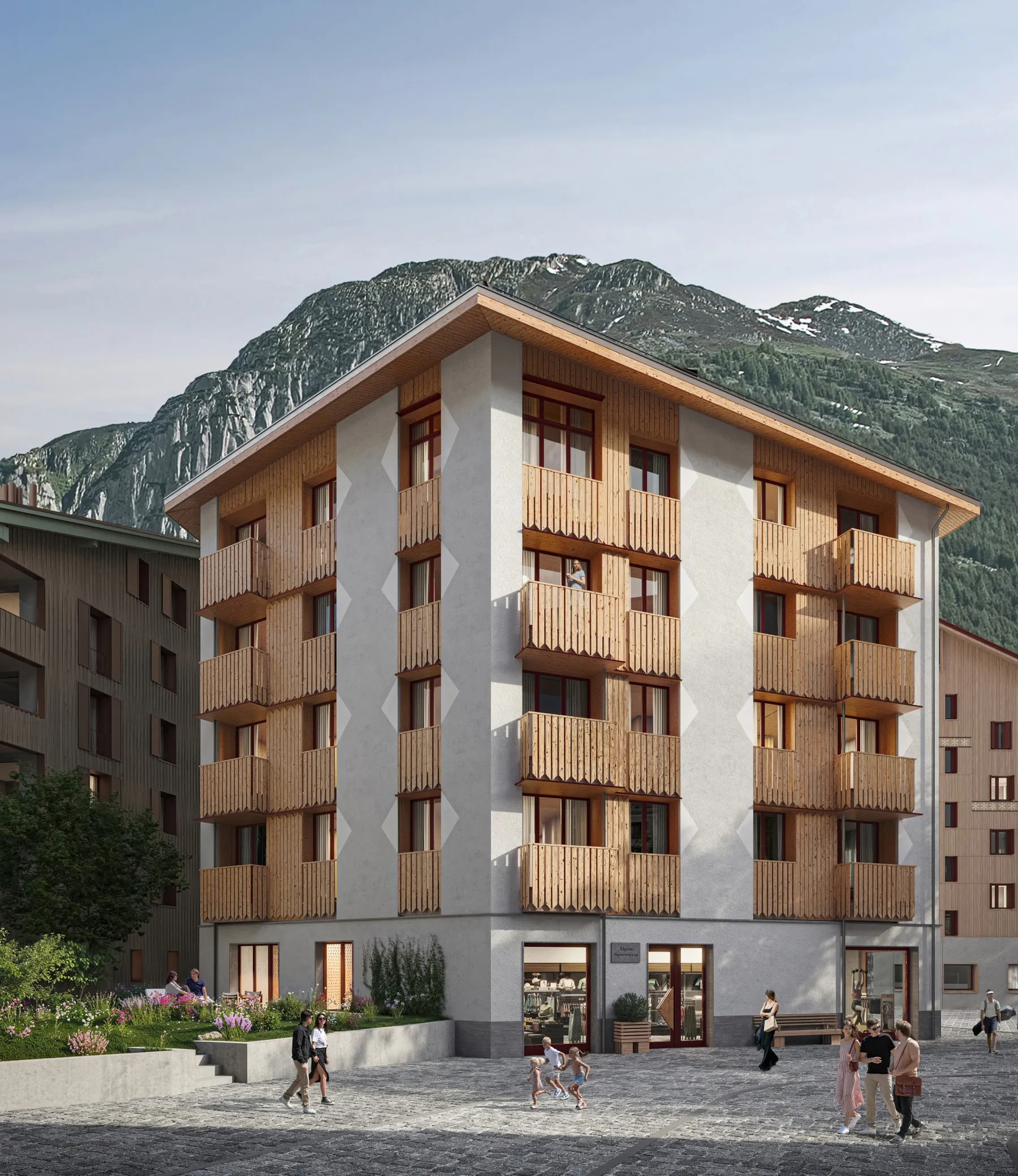 AVA, vom preisgekrönten Schweizer Architekturbüro OOS entworfen, ist eine zeitgenössische Interpretation der klassischen Schweizer Chalet-Architektur.
